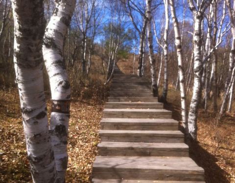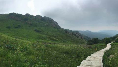 秋天去最好 万山红遍 层林尽染 蓝天悠远 白云婀娜 山路旁的白桦树 婷婷玉立 林间 落叶覆盖 散发着浓浓的秋的气息 快到最高峰时 一级级的木栈道 将你引入千亩高山草坡 面对斑斓的群山 极目远眺 还有什么烦忧放不下呢?