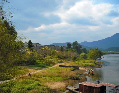这里有丰富的历史人文积淀,又位于青弋江的一段。它其实主要分桃花潭西岸和东岸两部分。西岸主要有怀仙阁、青莲祠、汪伦墓等,也有现代的四君子阁等。东岸其实就是桃花潭镇。空气清新,景色优美。