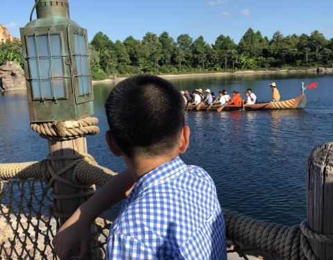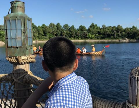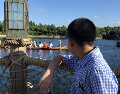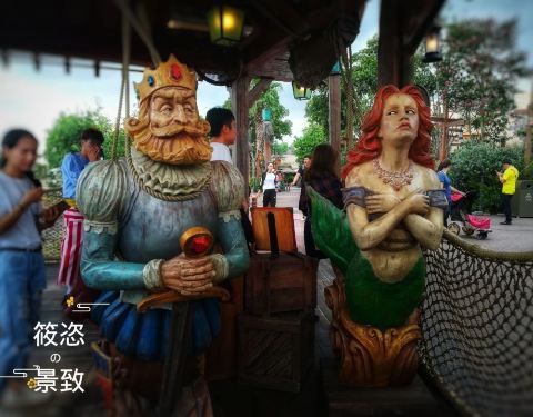 船奇戏水滩是一个孩子们特别喜欢的游乐场所,给这里五分是因为人少不用排队就可以游览。而且谁让我那么喜欢《加勒比海盗》这部电影呢?这个海盗船布置得很是走心,站在船上还能和湖中心探险家独木舟里的游客互动打招呼,别有一番情趣。建议排队或游玩累了的朋友,来这里小憩一下,在海盗船边各种凹造型也是很快乐的!