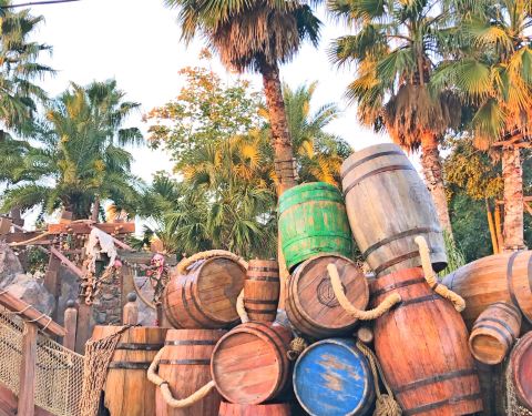 这个游玩项目位于迪士尼乐园宝藏湾。 所有的布景都非常逼真,身临其境,有种在加勒比海的感觉