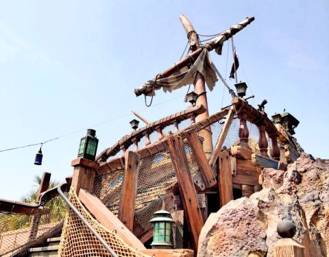 这个项目估计是为了分流点人流,小朋友估计很喜欢,特别是男孩子。可以假装捞了宝藏嘿嘿~ 正好吃完米奇冰淇淋进来冲冲手哈~ 还可以打水仗什么的,个人不是特别喜欢,觉得乱哄哄的,估计夏天进来比较舒服,但是也挺晒的……