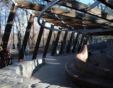 轻井泽石之教堂是一位美国设计师的设计作品,他从轻井泽优越的自然环境中得到灵感,建造了这座独特的教堂。这座把石、光、水、绿色、树木融为一体的天然教堂,吸引着世界各地的新人们慕名来此举办婚礼。整间教堂由石头和玻璃相互融合堆砌而成,呈大型弧形结构,石头代表了男性的刚强健壮,玻璃则象征女性的柔和细腻,为了让太阳光可以自然地照进教堂,设计师通过计算太阳轨道,使阳光不仅照亮了整座教堂,而且根据时间的不同,变化着教堂内的表情,让新人们犹如沐浴在祝福之光中。