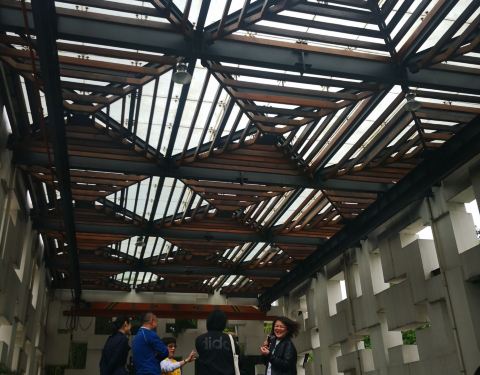整体掩映在绿树中,远远望去,确实像只欲飞的蝴蝶。从康定路一直向东骑行,到了苏州河边,便到了从康定路一直向东骑行,到了苏州河边,便到了。先上了附近的恒丰路桥,给它来个浏览。整体掩映在绿树中,远远望去,确实像只欲飞的蝴蝶。滨河的步道木质,也有篮球场地。闲时看看两岸,还行。