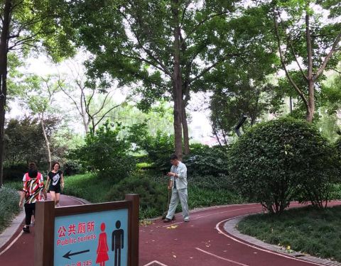 里面别有洞天,不但绿化覆盖率高,有健身步道,还有小盆友运动的篮球场和足球场