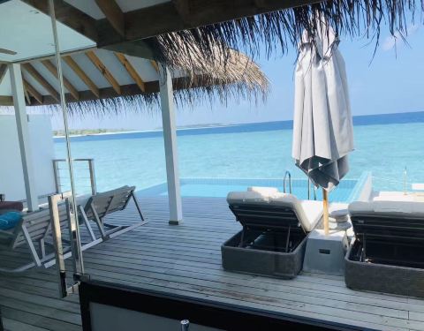 好天气太给力,温度也非常舒服。早上出海看海豚和海龟。海豚很多可惜海龟没有看到。期待下午的拖尾航拍。菲诺夫超棒。水屋带泳池210平米,全马代最长的拖尾沙滩!