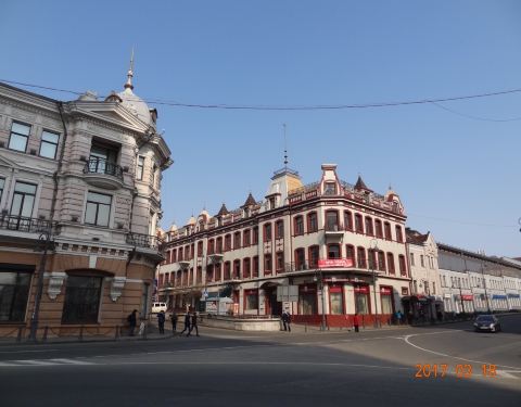 海参崴最主要的商业街道了,这里两边都是些漂亮的老建筑的,三四层楼高这样的,临街的店铺比较多,也...