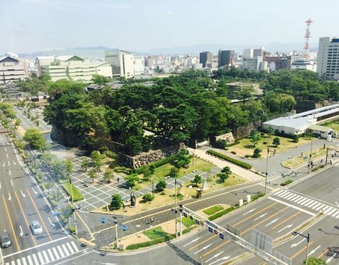 高松港码头对面就是高松中央公园,旁边是火车站,公园依旧保留着日式园林的风格,古城墙外郁郁葱葱的树木,布景非常漂亮,当地的类似庙会一样的活动也会这里举行,感觉秋天的枫树一定很赞