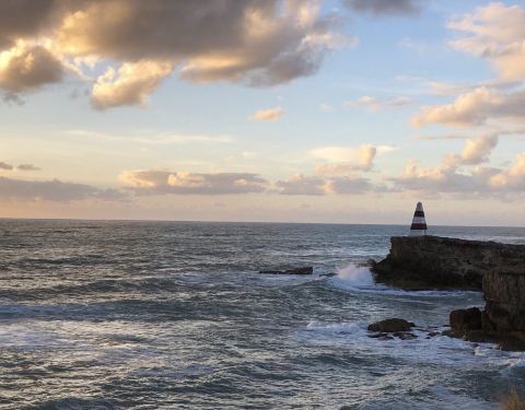 但有一个非常漂亮的景点,叫robe obelisk,洛贝方尖碑,就在海边,特色是这里的海边是石...