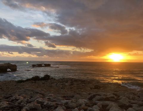 到了Robe,正是落日的时间。 在Robe obelisk看到夕阳西下。也一样是悬崖峭壁,海涛汹涌的拍打着,泛着泡沫。 Robe有很奇怪的地理特性,应该都是石灰岩,有各种奇怪的形状,长满了特别的植物。 因为有很厚的乌云,...