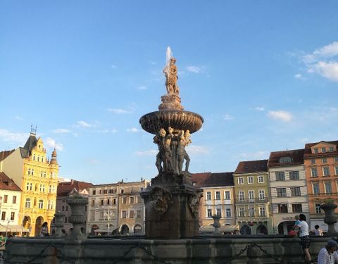 这里是捷克最大的方形广场和最高的喷泉池,这么小的一个小镇居然有两个捷克之最,棒呆啦!