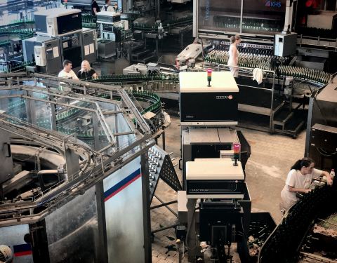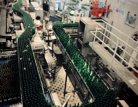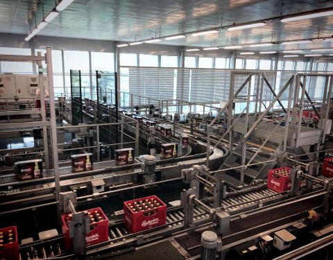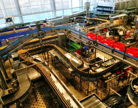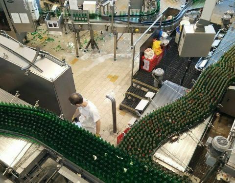 今天参观了捷克的百威工厂 一进厂就闻到了浓郁的麦芽发酵的味道 参观过程中没人还可以喝上一小杯 比美国的百威好喝多了 有关百威的品牌之争请大家自行Google 该厂有两条生产线 每条生产线的产能为4万瓶每小时。