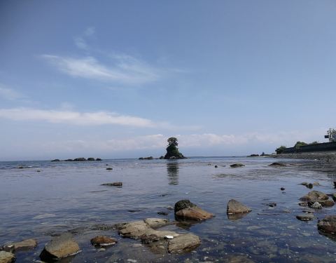 日本这个沿海的城市,有许多漂亮的海滩,富山县的这个雨晴海岸最吸引我的是它的海水清澈,游人稀少,可以很好的游览,还有它的特别的一个孤岛上一颗树