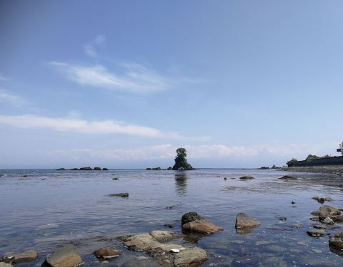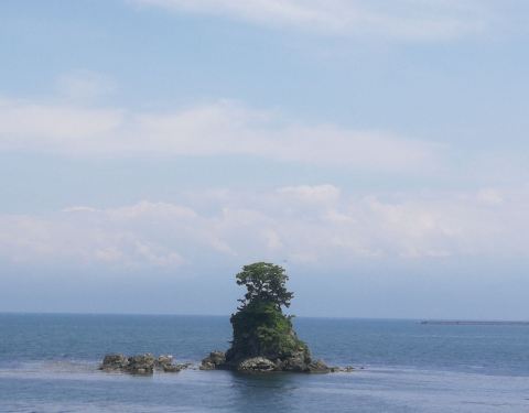 在万叶集里,被咏作[涉峪]的雨晴海岸,到处是礁石,以白沙青松而出名。这里被选为日本百大海岸之一