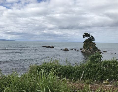 托友的福,顺利完成最后高岡的大大小小的打卡之行。 在万叶集里,被咏作[涉峪]的雨晴海岸,到处是礁石,以白沙青松而出名。这里被选为日本百大海岸之一。 据说晴天的时候,可以穿过富山湾遥望3000米级的立山连峰。今儿天气倒是很不错的,就是运气不够啊,立山连峰木能看到吖…[允悲][允悲]… [义经岩]是将军源义经败落奥州途中,等待阵雨停歇的岩石,是[雨晴]的地名由来。 #趴趴走四方.高岡雨晴海岸#