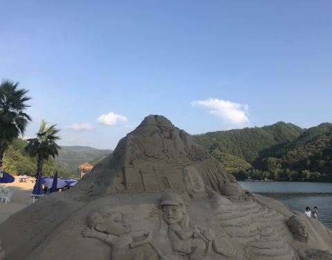 去丽水玩的时候 从云和前往莲都一路自驾前行 如果需要看沿途的风景 必定会遇到这个景点 一开始是以为这边有沙滩️想来玩玩看的 最初是不需要收费的 现在已经开始陆续收门票了 里面也有住宿和农家乐 正好来的时候 还有沙雕城堡展 沙雕技术真的是很厉害[强] 正好是周末能看到很多浙江当地人会来这边度假 沙滩边还可以玩玩水 水不深 一眼望去可看见一排沙滩椅 都是需要收费的 这边也可以BBQ 器材不需要你自带 旁边都有租赁的 还是比较的方便