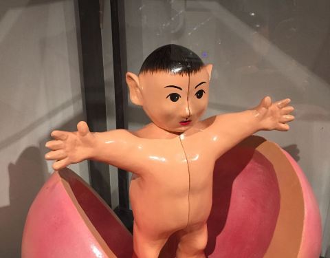 在冈山到处都有桃太郎,最容易看到的就是位于冈山站前面的桃太郎雕塑,高举一只手好像正在眺望远处,脚下是他的好伙伴狗和猴子,跟着桃太郎一起到处消灭魔鬼。除了这里,还要注意大街上脚下的水孔盖,上面也有桃...