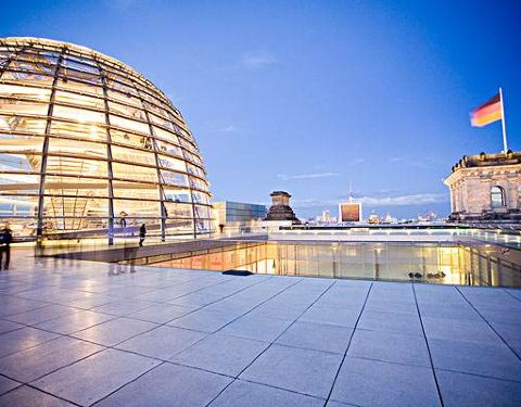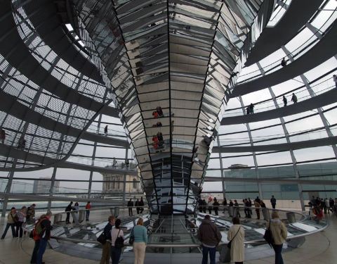 德国国会大厦是免费参观的,但除了12欧元的导游服务外,免费参观的名额都满了,不过花这个钱还是很值的