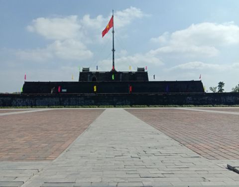 就在顺化皇城大内午门的对面,高三十三米三。一共有三层。是阮朝时期国门内的最重要地标,而现在只有历史作用了,大旗台已经挪到了河内。