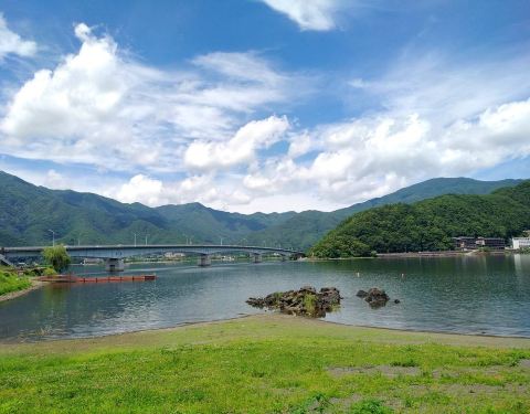 湖很大,围着湖边有很多商店。最入的酒店会看到全景的河口湖。 有很多活动,例如划艇,踩船,风景也不错。 我们是夏天来比较绿草如茵,但夏天天气比较不稳定,我们上午天清,下午打雷下大雨。