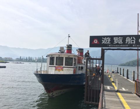 游览船会绕着河口湖转一圈,航程20分钟左右,官网上可以查询到发船的时间。