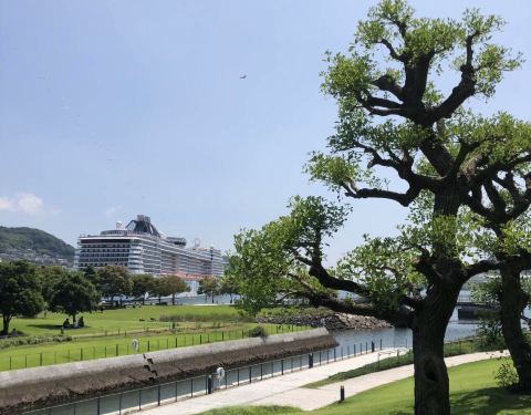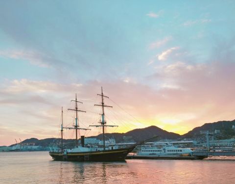 离新地中华街挺近的,邻近长崎港,风景不错离新地中华街挺近的,邻近长崎港,风景不错。靠近五岛轮渡的地方有一艘黑色的帆船,好像是蒸汽船,似乎还是遗迹来着。