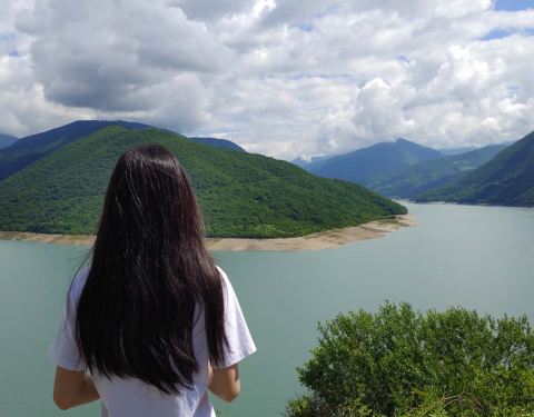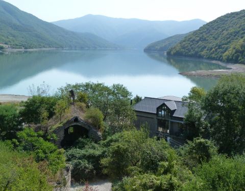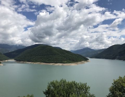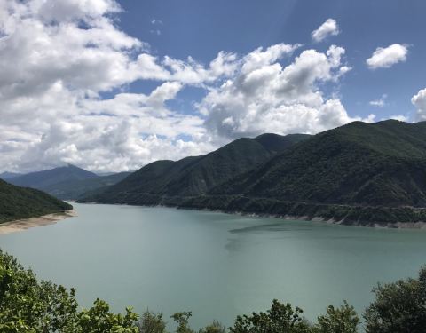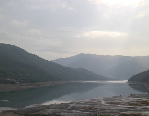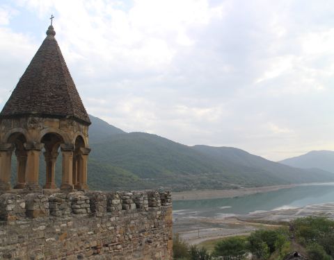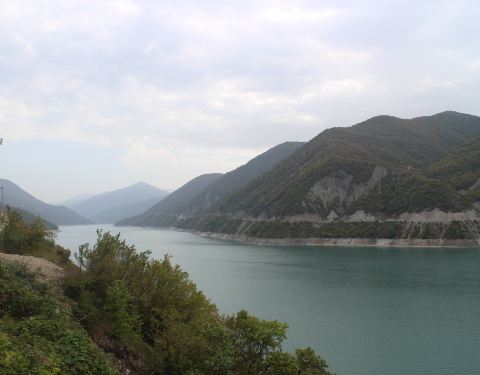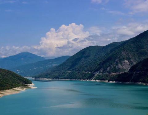 也就是Zhinvali蓄水池,它和阿纳努里城堡曾被登上《孤独星球-格鲁吉亚》的封面。远处延绵的山脉,脚下清澈的湖水,自然和人文风光的绝美结合,这里绝对是格鲁吉亚颜值最高的地方之一,目前又是一处准世遗地。