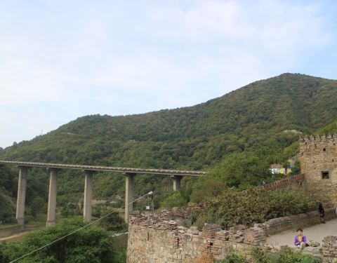 在第比利斯去卡兹别克的路上,lp的封面阿娜努日城堡边上,不到城堡的地方有座桥,站在桥上也是个好的拍摄角度,不过河都有点干了。