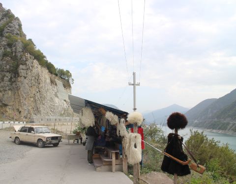 第比利斯开车去卡兹别克的必经之地,属于沿途三大景点(纪念碑,教堂)之一,也是第一个。沿路有若干取景地,其中有一块有两三家商贩的是最佳视角。