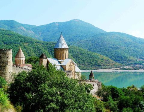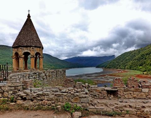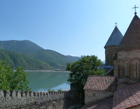 脚下清澈的湖水,自然和人文风光的绝美结合,这里绝对是格鲁吉亚颜值最高的地方之一,目前又是一处准世遗地