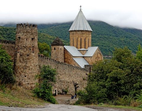 而在河流的尽头,Ananuri城堡安静的伫立在群山脚下,与世无争。难怪LP的英文版曾经将它作为封面
