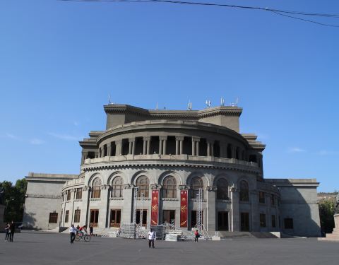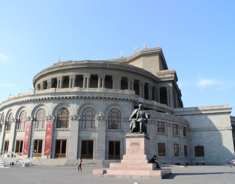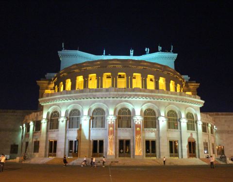 位于埃里温市中心的自由广场,该剧院由亚美尼亚建筑师亚历山大·塔马尼扬设计。