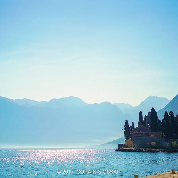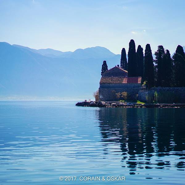 城市面山临海,山青灰少绿植,海水碧蓝青翠。两座紧挨着的水上建筑真的是惊到我了,似乎一座是修道院一座是清真寺,我不太敢确定 沿着后山的古石城墙爬到半山腰的小教堂俯瞰老城和科托尔湾