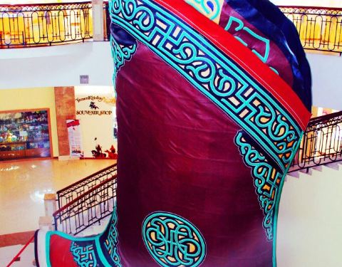 ...下是展馆 塑像内有电梯 可以上到塑像的马头处 临风而立 一览群山 大草原的原始美还真是风光无限塑像高40米 用253吨不锈钢落成 底座是一栋圆形建筑 地上两层 地下一层 一层是大厅与商店 有一只世界上最大的靴子和一只巨大的马鞭(据说是成吉思汗在蒙古找到的) 二层是餐厅 地下是展馆 塑像内有电梯 可以上到塑...塑像高40米 用253吨不锈钢落成 底座是一栋圆形建筑 地上两层 地下一层 一层是大厅与商店 有一只世界上最大的靴子和一只巨大的马鞭(据说是成吉思汗在蒙古找到的) 二层是餐厅 地下是展馆 塑像内有电梯 可以上到塑像的马头处 临风而立 一览群山 大草原的原始美还真是风光无限。 展开