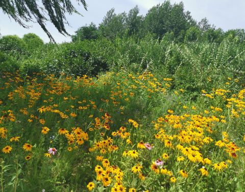景色很美,种了很多薰衣草,格桑花,菊花,还有一个老火车,蜂巢酒店。还有湖泊,廊桥。不收费,休闲散步好去处!