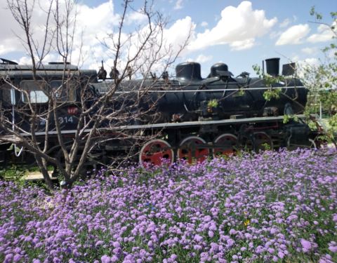 ...人工湖,花很漂亮,早上气温也蛮低的,很凉爽,在这里照相、散步都不错,旁边还有正在装修的火车餐厅
