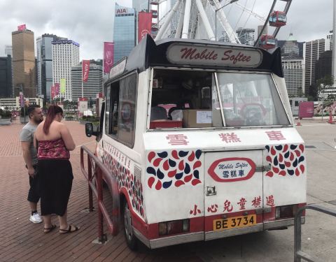 这一处活动空间相对来说的视野比较好,一面对着维多利亚港。除了欣赏自然风光和海景之外,这还有摩天轮等游乐设施。尤其是摩天轮,可以俯瞰整个城市。
