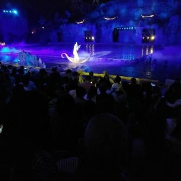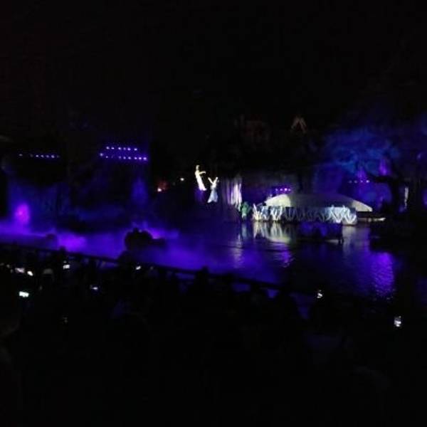 晚上看了两场表演,暴雨山洪,发大水的气势很壮观。梦幻北极的色彩灯光很绚丽。谷里还可以玩很多娱乐项目,可以有些水上项目停了,夏天肯定更好玩。