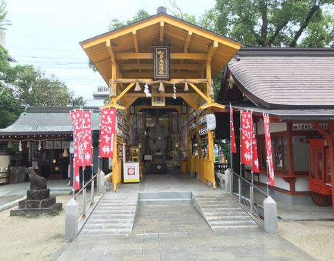 不是非常出名,但是门口那条街很热闹,有一些小店铺卖一些小吃神社不是在很热闹的地方走,过来有一定的距离。不是非常出名,但是门口那条街很热闹,有一些小店铺卖一些小吃。糯米的东西,烧烤等等。
