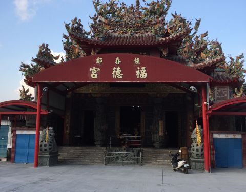 在恒春老街内逛,后面近猴洞山公园有两家庙宇:天后宫和你这家福德宫。后者是比较大,牌坊后就是一大遍空地,里面只有一个大殿,设计简单。