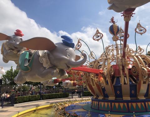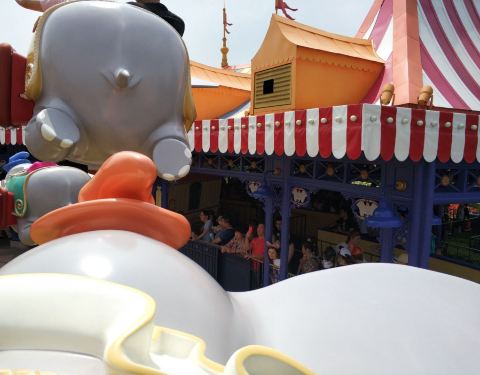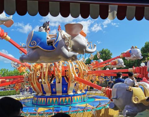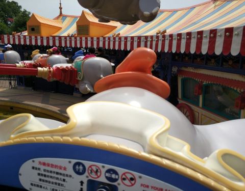 小飞象是上海迪士尼乐园内的一个热门项目,每次过去排队的人都挺多的,大概十几个小飞象,体验的时间是比较短的,1分钟左右,可以上下升降,这可能是小飞象的唯一乐趣了吧,但是小孩子就特别喜欢这种升降的感觉,还挺适合拍照的。