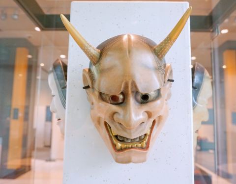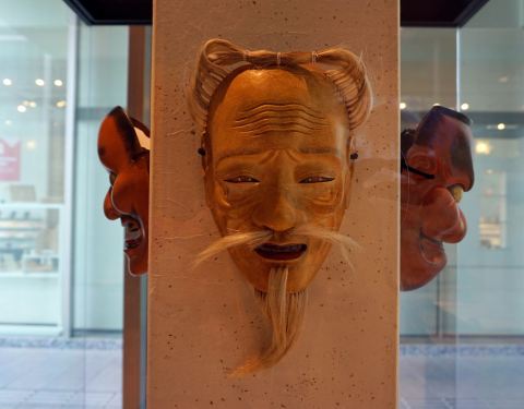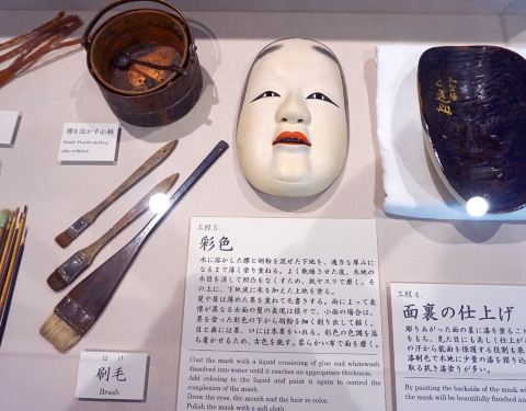 不过能乐面具的取放是有规矩的不然容易污损,不要自行拿取,一定要按工作人员的指示一步步来