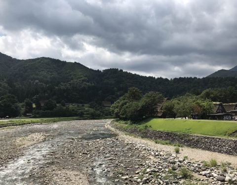 相逢桥又叫做荻町桥,一头连接着白川乡巴士总站,一头就是通向白川合掌村。这是架设在庄川河上的长达107米的吊桥,走在上面有晃晃悠悠的感觉。桥上的风景很棒,可以看到冰凉清透的河水在下面流淌,就算是在炎炎炎的夏日,站在桥上也能够看到丝丝凉风。