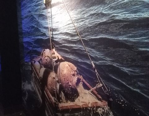 里面一艘满载中国古瓷器的古船打捞过程,以及古船1:1模型,较震撼人心