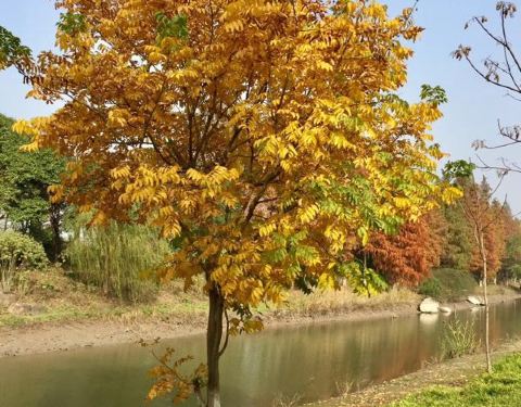 地方在闵行吴泾的滨江。从市区开过去比较远,周边路修得挺好了,很宽。公园免费,门口有个大大的停车场。其实紫星路一路到公园门口,路两边就开始有湿地了,看到有些人已在湿地附近玩了。 公园里游客很少,一个人独享的空间很广阔。绿草地非常养眼,栾树已经开始渐变了颜色,前一天大雨,掉了一地金黄。 一边是湿地,一边是滨江。感觉湿地的地形比较适合钓鱼,滨江的栈道修得不错,站在栈道上江风习习,江上船只往来,涂滩上小螃蜞爬来爬去。