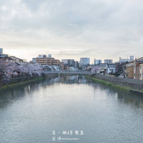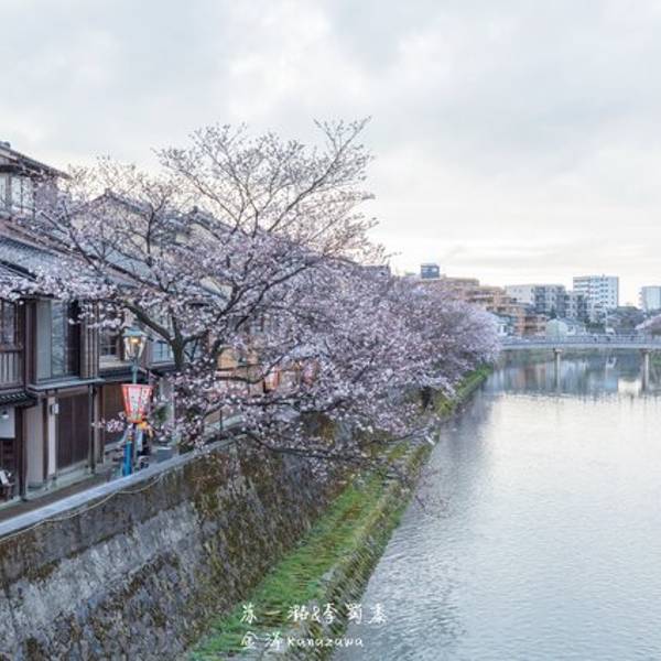 石川县立美术馆展示古美术品、前田家的收藏品、石川县出身作家的日本画、油彩画、雕刻、工艺品等现代作品。其中加贺莳绘等重臣的道具以及九谷烧作品等等,被誉为人间国宝作家的工艺作品。我们没进去看,就拍了动画场景。然后我们乘巴士去东茶屋街,这也是我们今天的最后一站。我们下车后,到了浅野川大桥。在浅野川一侧是主计町茶屋街,对角线另一侧就是东茶屋街。我们就先去了主计町茶屋街,就从桥下过去就可以。