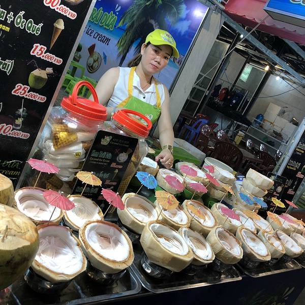 真好吃,唯一带有繁体中文的店面,猪骨面粉料非常足真好吃,唯一带有繁体中文的店面,猪骨面粉料非常足由于在第一天的行程时候,我们已经路过这里看好这里,第二天也就水道渠成的来到了这里,价格大多是6W一份,1.5W配冰咖啡,咖啡并不苦还非常的甜好喝,猪骨海鲜...真好吃,唯一带有繁体中文的店面,猪骨面粉料非常足由于在第一天的行程时候,我们已经路过这里看好这里,第二天也就水道渠成的来到了这里,价格大多是6W一份,1.5W配冰咖啡,咖啡并不苦还非常的甜好喝,猪骨海鲜面的猪骨真的很大块,且海鲜也很丰富,汤底很甜,来到这里都很甜不咸,不知是骨汤甜还是配料,咖啡像是两勺糖,感受不了 espresso 的苦涩,像是喝甜的凉茶哈。咖啡加冰,爱我请走鑫(*^▽^*)晚上来到阳东镇的市场,和普通的集市相差不大,就是多卖衣服,卖甜食的,路上会有很多品尝的坚果花生介绍,可以尝试一下,很甜,有点芝麻包围,分不同的Size不同的价格,记得在第三天的时候,本来需要买5才送一的,问了拿名片后决定继续探寻,但最后还是用剩下的越南盾买了4中大罐,大概9W一罐,我说 Oh So bad。准备走之时,小哥哥偷偷的送了一饼mini Size的,脸带微笑还说 Here's my little gift for you.❤ 说真的挺暖的,马泪都快流出来,所以我决定分享给大家,谢谢创造温暖的时刻,那情景还深刻的记得,祝生意兴隆。阳东镇市场集市有海鲜店,也有特色的小吃,果实,总之是一条很多老美等外国人的集市,本地人很少,来来去去的是白皮肤比较多耶,导购的会热情的问好并递上他们的产品,也有外国人在这里做生意,不知道为啥众多的人都会询问我们是否来自 HongKong。登登等登 瞪登等登阳东镇市场第二天的时间依然过得很慢,慢慢慢的节奏,由于上午坐了船,会比昨天稍微疲惫,晚上我们去了酒店的泳池游泳,遇到国内来富国岛的旅游团,来自广西,都会粤语,很自然的交流起来,很欢乐。却在此时的天空不远处有电闪雷鸣,我想之后会下一点小雨吧,值得开心的是我们的出门都是阳光普照,天气甚好。 展开