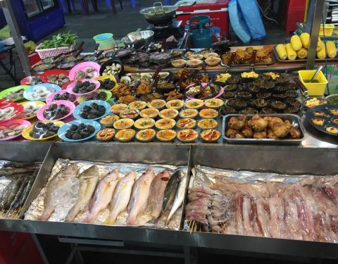 傍晚的大排档非常热闹,管理也很好,井然有序,干净整洁。