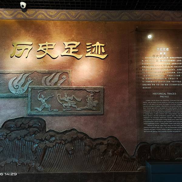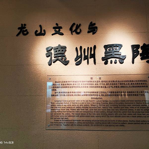 这是德州市性价比最高的去处,门票不收费,凭身份证领取门票。下午休息后去的,到达时已近三点半了,四点半清场,参观不足一半。问工作人员中午是否清场,回答是否定的,下次来时带着食品,一气游览完毕。 博物馆用文字和实物介绍了德州从新石器时代至今的发展历程,龙山文化,灿若明珠,不到博物馆不知家乡的历史厚重。