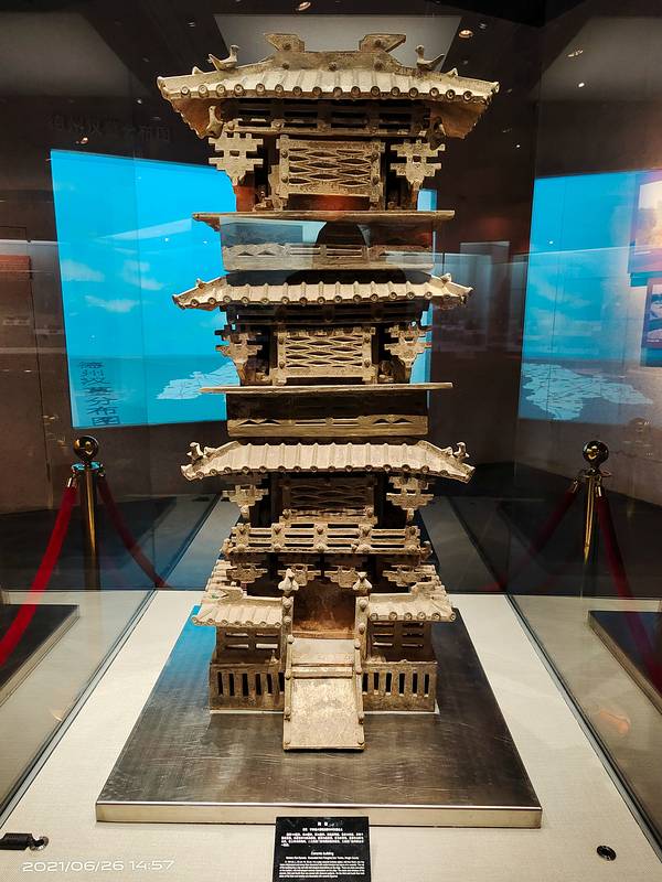 汉代四层绿釉红陶楼1978年出土于宁津县大柳镇庞家寺村汉墓。为仿木建筑的陶质明器。该陶楼整体高大,造型逼真,结构严谨,制作精巧,对于研究汉代建筑和文化,有重要的历史意义和艺术价值。