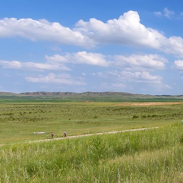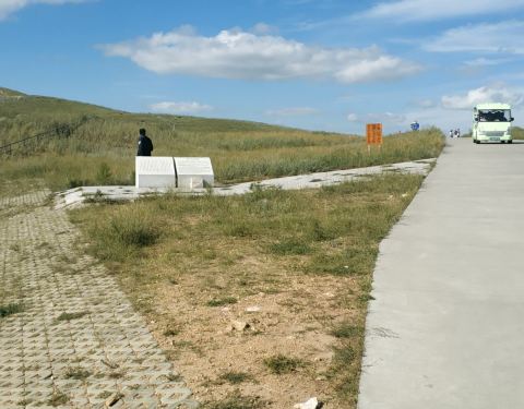 元上都遗址南向5公里,有一座平地隆起的草原山峰,名叫乌兰台(与锡林浩特的乌兰五台只差一个字,后者是内蒙佛教圣地,与山西五台齐名)。这里是当年忽必烈为拱卫元上都而在此设置的烽火台之一。山顶有一座巨大的敖包,由当地牧民经年累月以块石堆垒而成。登上乌兰台山顶,顿觉天地的宽广在眼前平铺延绵,而元上都遗址城垣的人工矩形携着巨大的尺度,让人情不自禁地感受到自然的广袤永恒和王朝的兴衰变迁。元上都遗址游客中心回望:背景中的山峰就是乌兰台。元上都遗址博物馆就选址在乌兰台东侧面向遗址方向的半山腰处,参观者由南而来,绕乌兰台而行,通过东北侧山脚下的步行道进入博物馆区,有隐藏而豁然出现之感。